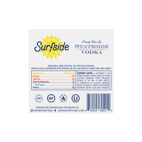 Surfside Iced Tea is proudly made with Stateside Vodka, has 100 calories per can and is non-carbonated. Because iced tea shouldn't have bubbles.